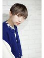 フロントからサイドにかけてゆるくつなげたカットラインが可愛いマッシュショート。ボリュームシルエットが上の方にあるヘアスタイルなので小顔に見える効果も。