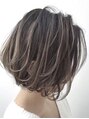 グレージュ(グレー&ベージュ)によるハイライトによって動きを感じるボブスタイルに、黒染めや白髪染をしてある髪にもアプローチ可能なので幅広い世代に応用できます。