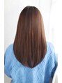 透け感のある前髪にさらっと落ちるストレートスタイルです。顔まわりのレイヤーが動きと軽さをだすアレンジ感のあるストレートスタイルです。