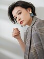 前髪をかき上げて、オールバックにスタイリングをした、オトナっぽいショートボブスタイル。モードカジュアルなファッションと、赤リップ、アクセントのピアスが、雰囲気をアップさせます☆