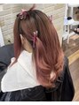 ポイントブリーチ+カラー+エクステ染め+エクステ+顔周りカット