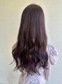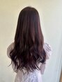 ピンクバイオレット/ブリーチなしカラー/ロング巻き髪/レッド