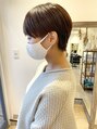 【気に入ったスタイルは''ブックマーク''しておくと便利です】【スタイリスト 高塚 栞里】襟足はすっきりとタイトに、耳の見える長さのマッシュショートです。あえてぱつっとラインを残してオイルでさらっと仕上げるとがおすすめです。
