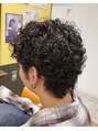 マッシュスタイル「プードルパーマ」のオーダー♪ツーブロックを伸ばしている状態なのでトップはふんわりするようにボリュームを出し、バックは潰れやすいのでトップより細かくカールを作りました。