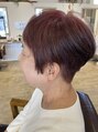 スッキリ刈り上げショートです。襟足ともみあげも刈り上げています。多毛さんにおすすめです。白髪を活かしたピンクカラーで女性らしさも叶えました!