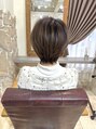 長年ブリーチカラーを続けた結果、毛先や表面の毛が切れて長さが伸びない状況でした。思い切ってバッサリショートにしてみました♪カラーは落ち着いたベージュブラウンです^_^