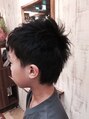 サイドは6ミリツーブロックトップはアシンメトリーでデザインしました。ただ短くショートにするだけではなく、少しデザインを入れてあげると、見違えるようにカッコよくなります(><)