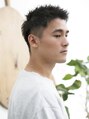 サイド、えりあしは短めに刈り上げ。トップは少し残してカットしました。サイドは浮きやすいのでワックスで潰すようにおさえます。