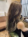 バレイヤージュ + 細かいハイライトを加えたロングレイヤー。巻いた時に立体感が出るように細かめにハイライトを入れることで自然なスタイルに!イルミナカラーでツヤ感と透け感もアップさせています!イルミナカラー【ヌード+サファリ】