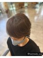 前髪ありショートボブ。くせ毛を活かしてふんわり。襟足は刈り上げし、コンパクトなシルエットに。セットもしやすくて評判のスタイルです。ナチュラルなトーンのブラウンでカラーリング。