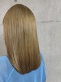 外国人のような艶めきと柔らかさのあるブロンドカラー※ブリーチ2回以上必須。オートクチュールヘアエステとの組み合わせで、ここまで艶感と光沢を出すことができ、ハイトーンを長く楽しむことが可能です。表面の艶とカットラインを大事にカットしてます。