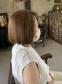 アゴ下の長さでギリギリくくれるシンプルなボブ。まとまりも良く維持しやすいスタイルです。ベージュ系で柔らかさのある明るさ。