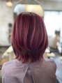 カラーは少し赤味の強いローズピンクで。カットはボブベースにバックは外ハネにウルフっぽくしました。20代30代40代50代/髪質改善/レイヤーカット/顔周りレイヤー/ニュアンスカラー/透明感カラー/抜け感/トレンド/春夏秋冬/大人可愛い/オトナ女子/ハイトーン
