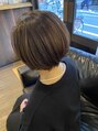 首元をスッキリみせるため、丸みのあるショートボブに。どちらかというとボブベースなのでショート初めて挑戦される方にオススメです◎ナチュラルなアッシュブラウンでツヤ感アップ!!