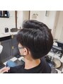 サイドはツーブロで抑え、ネープは刈り上げでスッキリとトップは流れや動きが出やすいようにしつつ扱いやすいよう調整しカットしシルエットよくかっこよく