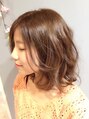 ふんわり大きなコテで作ったミディアムの巻き髪スタイル☆カラーは明るめのイルミナカラーで透明感を出しています。
