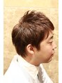 束間ショートスタイルにハイトーンのオレンジ系のカラーで軽い質感を出しています。カットで毛流れを意識してお切りしていますのでふんわり束間をしっかりだしています! <理容室><メンズ><シェービング><ヘッドスパ><理容> <メンズカット> /フェード