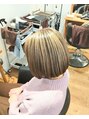 ボブに似合うハイトーンカラー。ケアブリーチ使用でダメージレスに楽しめます♪気に入ったスタイル写真は【ブックマーク】していただくと便利です。