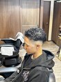 <理容室><バーバー>トップの毛を長めに残してバックに強めにパーマをかけました!セットはすごく簡単で髪を濡らしてタオルドライで軽く拭いたらあとは好きな整髪料をつけるだけでセットできます!