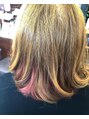 - インナーをブリーチ1回、ピンクをオン。インナーは入れたい色によって、ブリーチ回数が変わります