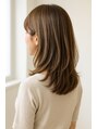 簡単にスタイリングのできるナチュラルレイヤーのミディアムスタイル。ハイライトで立体感を出し、赤みを抑えたベージュ系カラーでツヤのある透明感できれいに見せられます。オイルで整えるだけの簡単5分スタイリングで、忙しい朝もかんたん綺麗に。