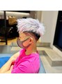 ホワイトピンク×ジェットモヒカン×バリアート×フェードカット