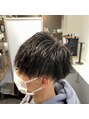 ショートマッシュに緩めのツイストスパイラルをかけたスタイルです!!ツヤ感のワックスをつけることでワイルドセクシーな雰囲気になります!(京成曳舟店 鶴岡 02022022)