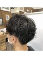 周りはすっきりと刈り上げ、上の長さはやや残し、アイロンで巻いたようなナチュラルなパーマをかけたスタイルです!!セットもラクに決まるのでおすすめです!(京成曳舟店 鶴岡 17022022)
