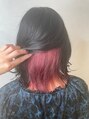 切りっぱなしスタイルにインナーピンク★ベースは落ち着いた色なのでおろしてると自然な感じに♪耳にかけたりしばったりするとアクセントになって可愛いです★