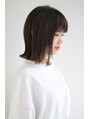 トレンドの外ハネボブと「イルミナカラー」で作るダークピンクベージュ。暗めのカラーだけど透明感を出せる様に配合しています。カットはブラントカットで少し前下がりに。前髪は軽めに作ってシースルーに仕上げてダークカラーとのバランスをとりました。