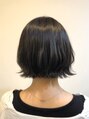 アゴぐらいの長さのボブです!普段外ハネにするとの事だったので、スタイリングしやすいようにレイヤーを入れました!カラーは職場的に明るくできない方にはオススメの透明感カラーです!一見黒に近い色ですが光に当たると透ける感じのグレーになります!!