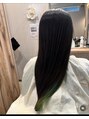 部分ブリーチの後にカラーバターでグリーンに染めています