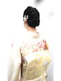 七五三の親御様の着付けとヘアです。ロングヘアを編み込みして下の方でシニヨンにしてあります。お参り後の洋装になった時も派手すぎず、忙しいママ達におすすめのアレンジです。