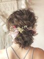 - ヘアセット ドライフラワー アップスタイル シニヨン ハーフアップ 結婚式 二次会 ヘアアレンジ