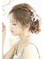 - ヘアセット ドライフラワー アップスタイル シニヨン ハーフアップ 結婚式 二次会 ヘアアレンジ