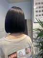 後頭部がきれいに見える前下がりボブ。ハンドブローでOK。クセがある方はブローしてください。。。世界一のダメージレスカラー使用。実際のお客様です。