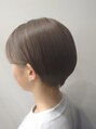 ロングからバッサリカットして、イメージチェンジ!顔周りの角を少しだけとることで、ハンサムショートに女性らしさをプラスブリーチ無しで14レベルのアッシュブラウン