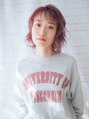 ピンクバイオレットのカラーにベビーバンクでカジュアルな中にも可愛さが残るスタイルです。自然光にあたると透明感がでて柔らかい質感に見えます。