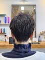 後ろはソフトに刈り上げをして、サイドは耳が見えるぐらいまで短くしてスッキリさせてます。量感は軽くなりすぎないように束で量を取ってあります。カラーは明るすぎず暗すぎずのアッシュカラーで透け感とオレンジ味を消す感じで。