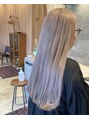 パッと目を引くロングのハイトーンカラーでオシャレを楽しめます!!ケアブリーチを使ってるので、ロングのハイトーンでも傷みは少なめに。