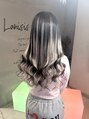 根元のダークトーンから毛先のシルバー系へ自然につながるコントラストカラー。細めに入れたハイライトが立体感をつくり、巻いた時に動きが引き立つデザイン。暗髪でも重く見せず、抜け感をしっかり出せるスタイルです。