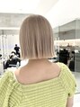 2ブリーチでつくるミルクティーベージュのミニボブ。ほんのり根元を濃いめに仕上げるのもちょっとした陰影が可愛い。ケアブリーチ のコントロールで透明感たっぷりでもツヤツヤです!※ブリーチ回数は状態を見て応相談です[立川/立川駅/立川南口/髪質改善]