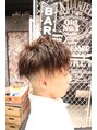 ゆるい縦ブレさせたツイストパーマで大人男子の雰囲気を演出、短いフェード スタイルで男らしい雰囲気をMIXさせた、カジュアルストリートスタイルが人気です!