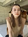 センターよりもやや左よりに分け目を作ってタイトに耳掛けしています。もみあげや毛先に表情をつけて、顔まわりが寂しくなりすぎないようにしています。