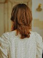顔まわりも短めですっきりとしたミディアムのウルフスタイル!表面がレイヤー状になっているので、全体に動きがつけやすいです。前髪がワイドバングなので周りと少し差をつけたい、少し個性的な感じにしたい方におすすめのスタイルです!