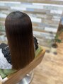 カット、ベースデトックス、ウルティア縮毛矯正。毛先とボリュームのメンテナンスカット。ベースデトックスで髪の毛と頭皮のクレンジングして、薬剤の作用効果アップ&素髪に。広がりやすいくせ、ダメージに合わせて、酸性よりのアルカリミックス。