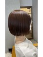 カットは顎下1センチのボブ、丸みが出過ぎないように全体の質感を調整し仕上げてあります。カラーは、自然な柔らかい暖かみを出しながらほんのりピンク感が分かる程よいブラウンで上品に仕上げました♪