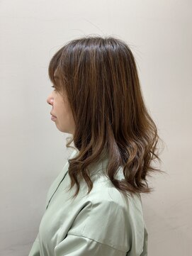 白髪ぼかしハイライトをして毛先に酸性デジタルパーマをかけました。」けっこう乾かしっパなしに近いです。【池袋・池袋東口・髪質改善・酸性デジタルパーマ・白髪ぼかしハイライト・根元ぼかし】