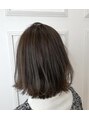 アッシュベージュカラー&肩上のミディアムボブスタイル動き、丸みの出るレイヤーカットを加えて外ハネと丸みを両方出来るスタイルです☆