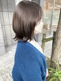 人気のグレージュ!髪質改善カラーでブリーチなしで透明感のでるアッシュ多めのグレージュにしました。カットは表面に少しレイヤーを入れて軽さや動きがでるようにプチウルフのスタイルを作りました。毛先を外にハネさせてトップはふんわりワンカール!